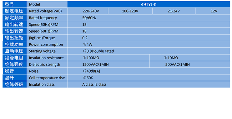 電機(jī)主要性能表 SPECIFICATION