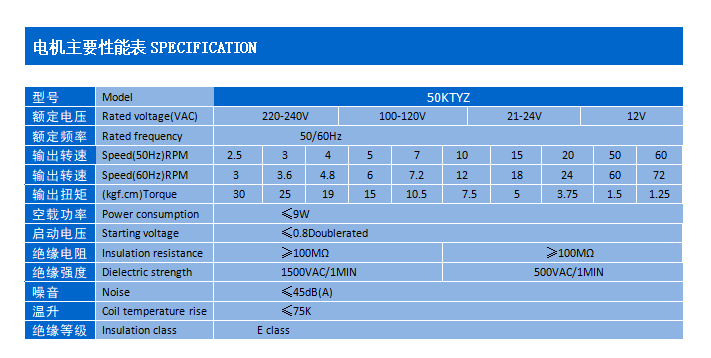電機(jī)主要性能表 SPECIFICATION